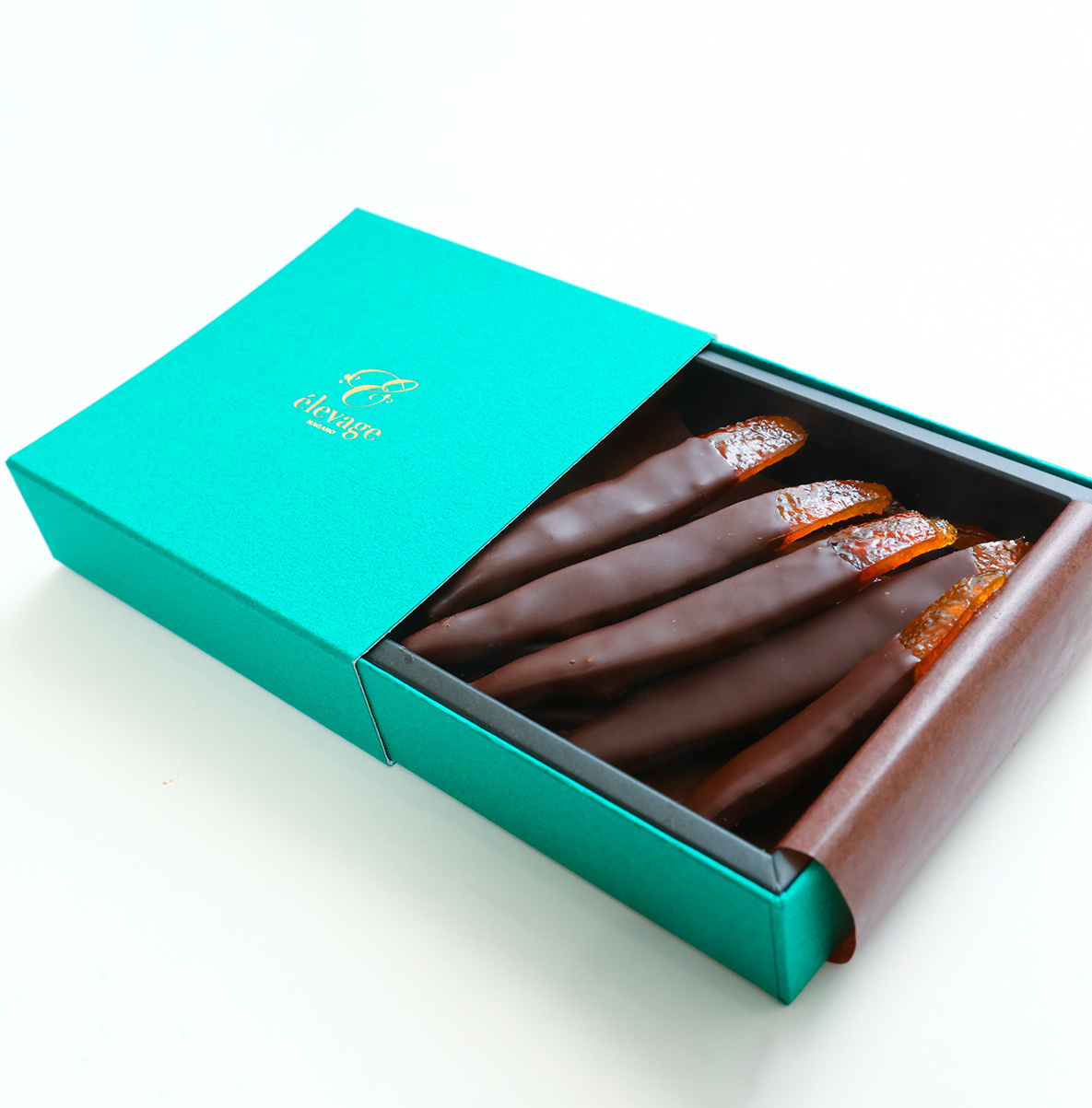 中川村の加志屋さんが丹精込めて育てたマイヤーレモンピールをエクアドル産のハイカカオショコラでコーティングしました。
