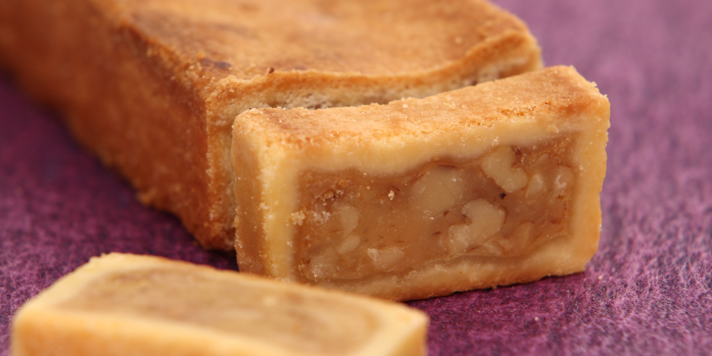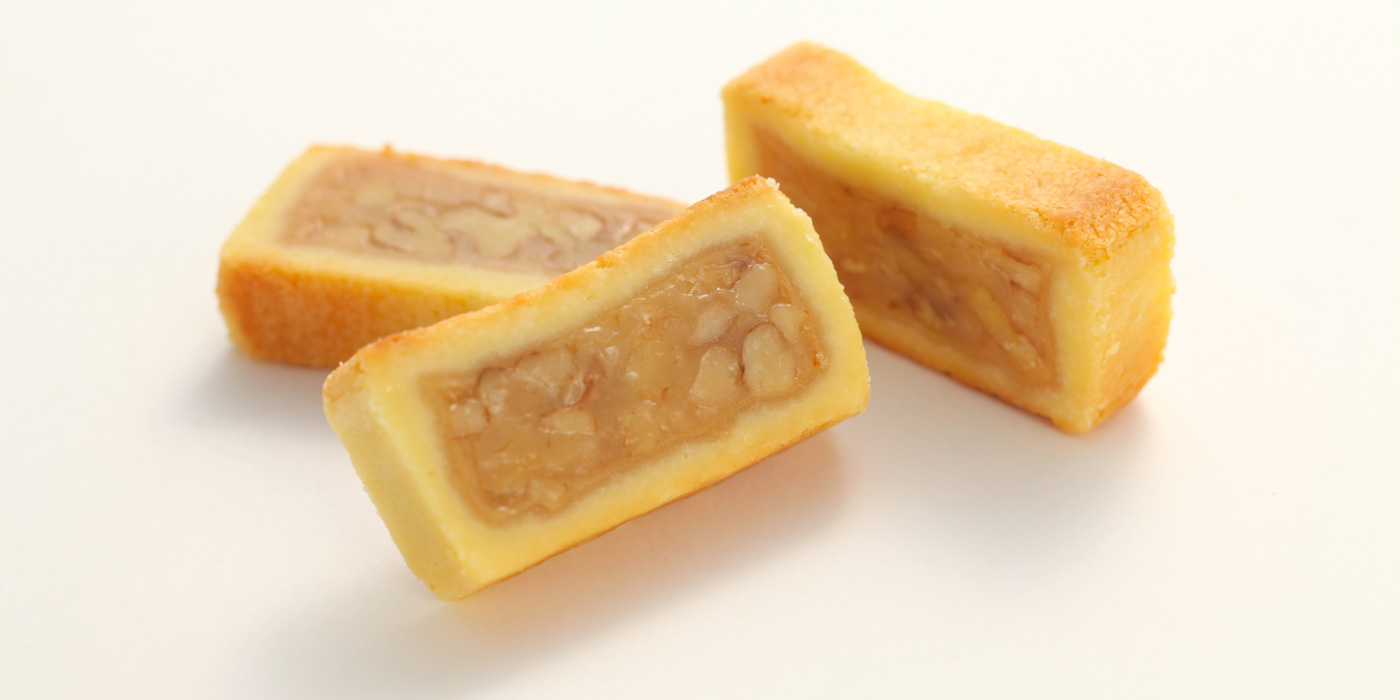 じっくり煮込んだ特製くるみキャラメルをサクサクのクッキーで包みました。ヌーベル梅林堂で最も多くのお客さまに愛されている自慢のお菓子です。