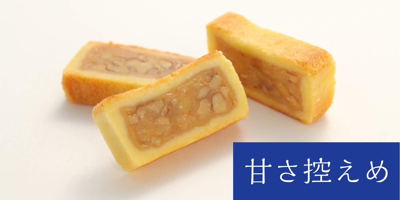 じっくり煮込んだ特製くるみキャラメルをサクサクのクッキーで包みました。ヌーベル梅林堂で最も多くのお客さまに愛されている自慢のお菓子です。