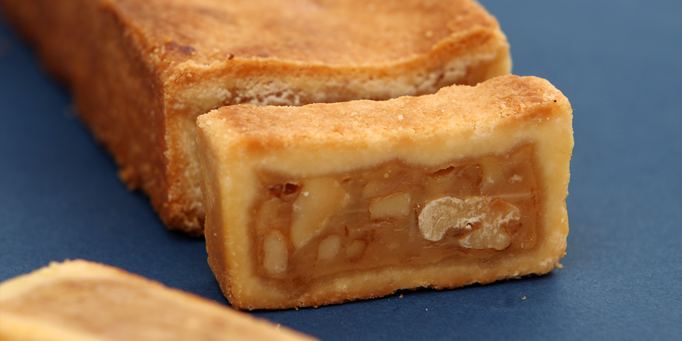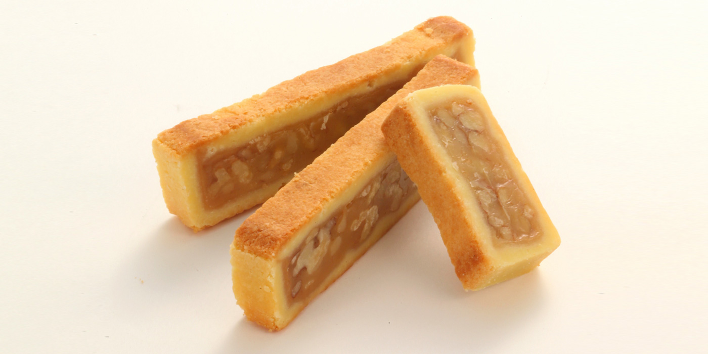 じっくり煮込んだ特製くるみキャラメルをサクサクのクッキーで包みました。ヌーベル梅林堂で最も多くのお客さまに愛されている自慢のお菓子です。