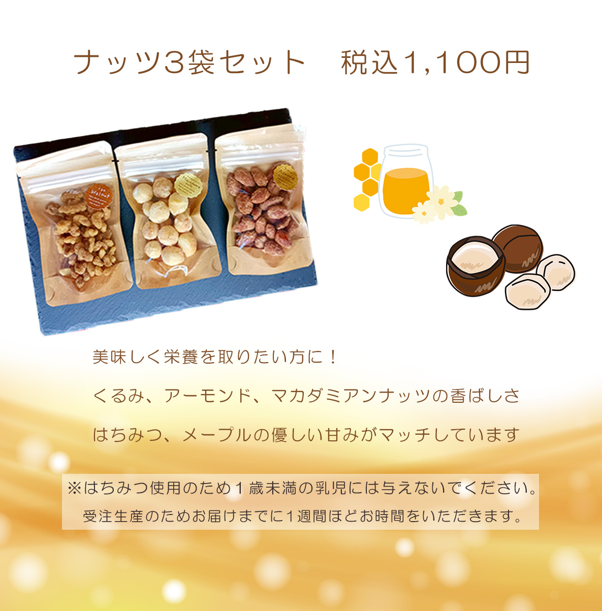 それぞれのナッツの本来の味はそのままに、香りと甘さをマッチさせた商品です。